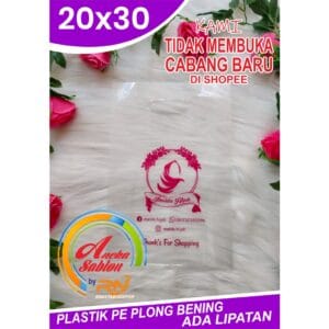 [100 pcs] Pe plong bening sablon 20×30 ada lipatan